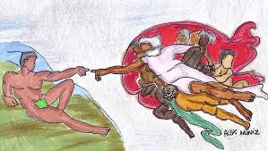 Releitura da obra de Michelangelo "A Criação de Adão"